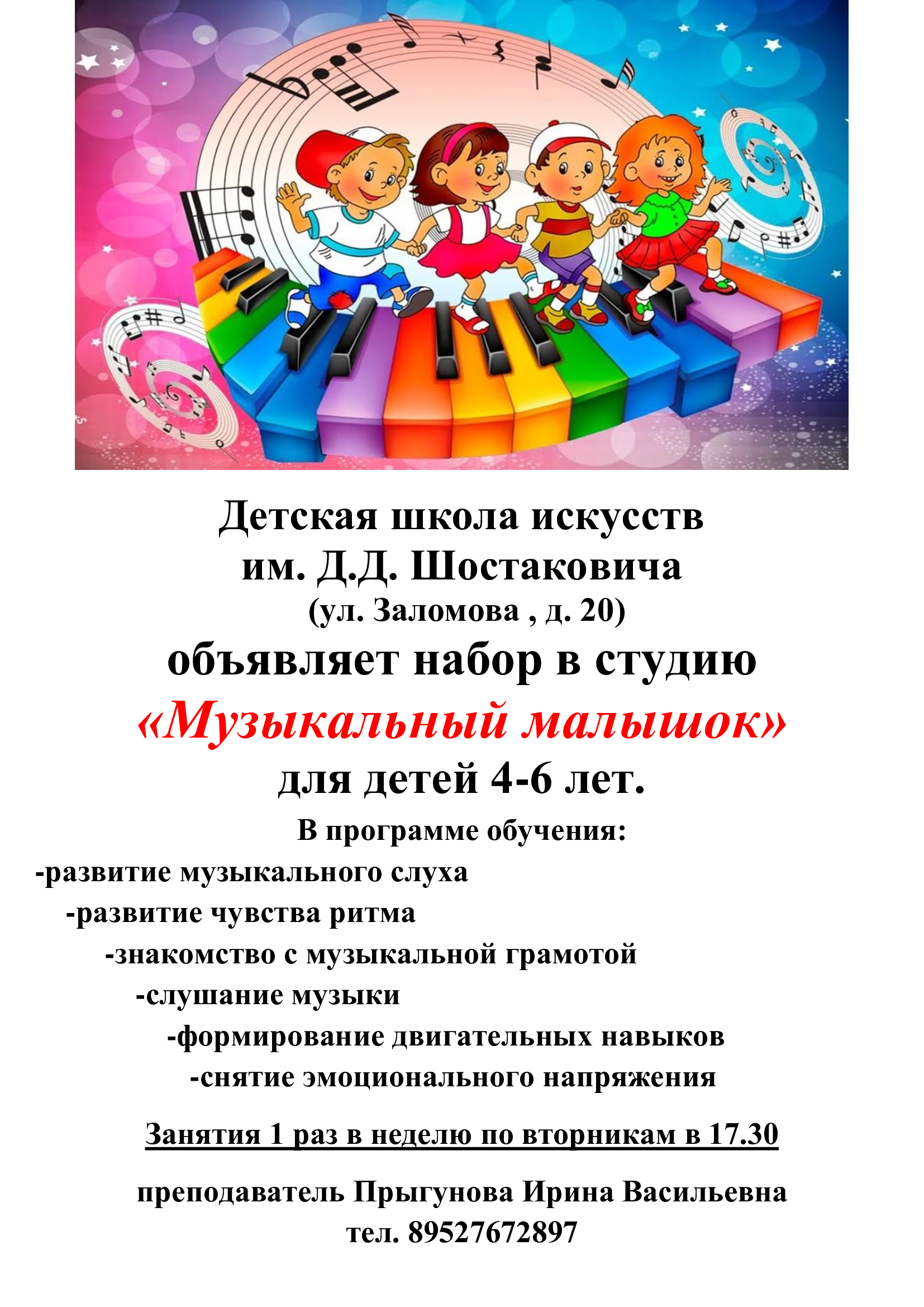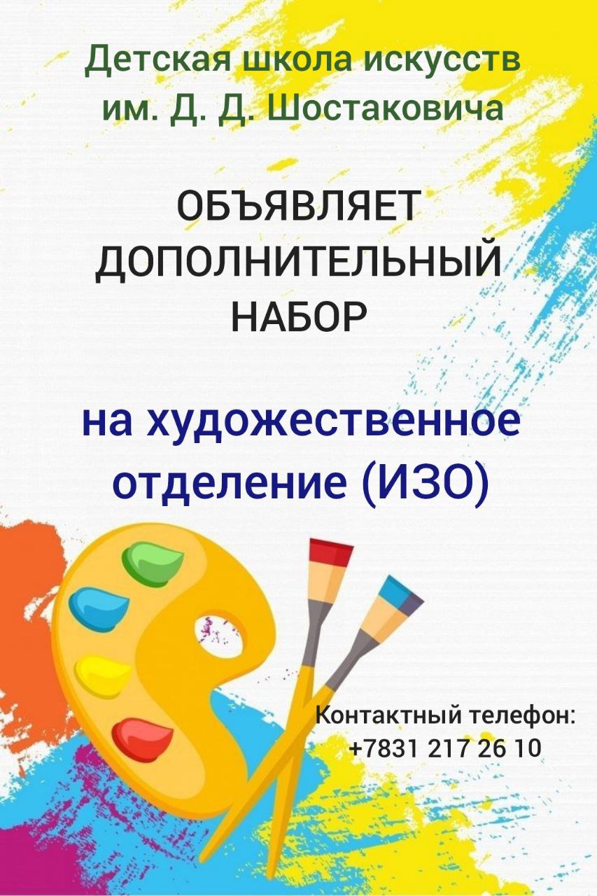 Детская школа искусств им.Д. Д. Шостаковича объявляет дополнительный набор на отделение начального художественного образования, срок обучения 3 года